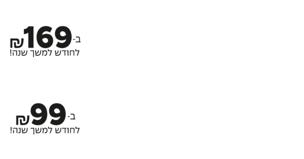 ללקוחות חדשים |169 ₪ לחודש למשך שנה, לאחר מכן 199 ₪ לחודש Fiber 1Gb | ב-99 ₪ לחודש למשך שנה ולאחר מכן 119 ₪ לחודש (השכרת נתב בתוספת 25 ₪ לחודש) | ההצטרפות בהתאם לתנאי התכנית והכפוף לקיום ציוד ותשתית סיבים תומכת | דמי פריסה לבית מגורים צמוד קרקע או דירה בבניין עד 4 דירות: 499 ₪, בבניין  מעל 4 דירות פריסה ללא עלות | עלות דמי מעבר ללקוח קיים – 99 ש"ח | סלקום TV  בכפוף לתנאי השירות